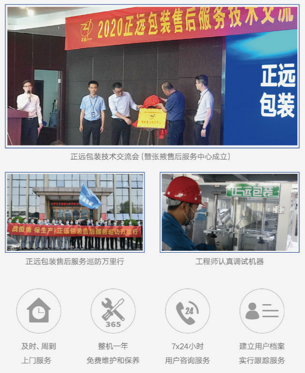 合肥正遠作為一家有品質的制造型企業(yè),除了為企業(yè)提供優(yōu)質的智能化包裝機械設備外,售前售后服務也是行業(yè)標桿。自2020年開年以來,為幫助企業(yè)“戰(zhàn)疫情 保生產(chǎn)”,合肥正遠先后舉辦了售后服務萬里行活動,在甘肅省張掖市成立售后服務中心等,只為更好的服務客戶,讓企業(yè)買的不僅僅是先進的設備,更是優(yōu)質的服務。