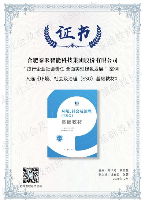 泰禾智能ESG案例入選我國(guó)首本《環(huán)境、社會(huì)及治理(ESG)基礎(chǔ)教材》