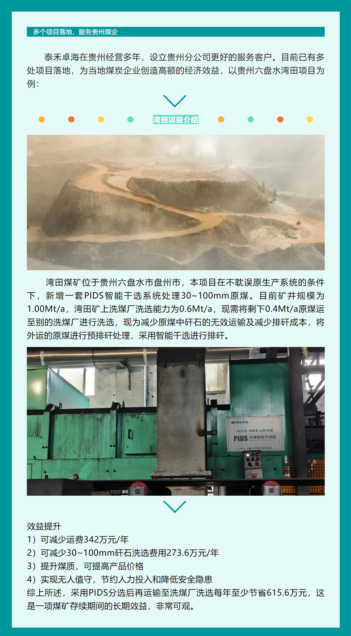 泰禾卓?;谧灾餮邪l(fā)的干法選煤技術(shù)成功研發(fā)出的AI智能立式分選機(jī),填補(bǔ)國內(nèi)原煤在6-20mm、13-50mm、30-80mm、13-200mm、50-200mm粒級無水選煤關(guān)鍵裝備的空白,開啟AI智能無水選煤的新時代。其應(yīng)用場景包括:動力煤、煉焦煤的預(yù)排矸,分選出優(yōu)質(zhì)動力煤、超低灰精煤,擴(kuò)展的應(yīng)用場景包括井下預(yù)排矸,高嶺巖回收、炭質(zhì)頁巖(黑矸)回收等。