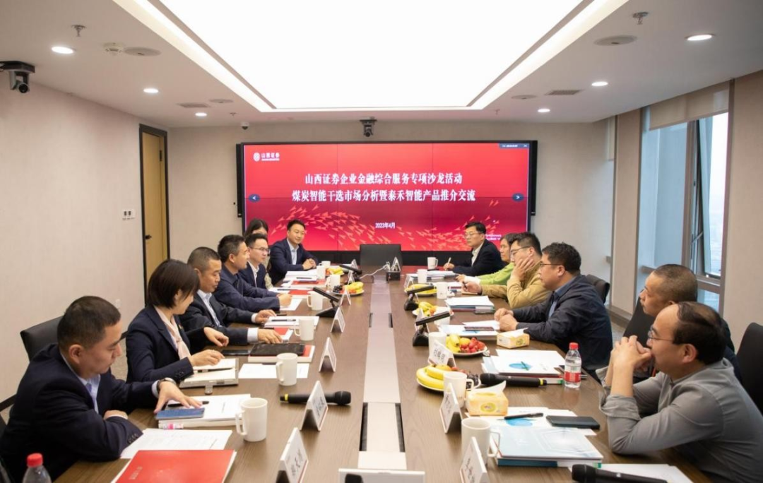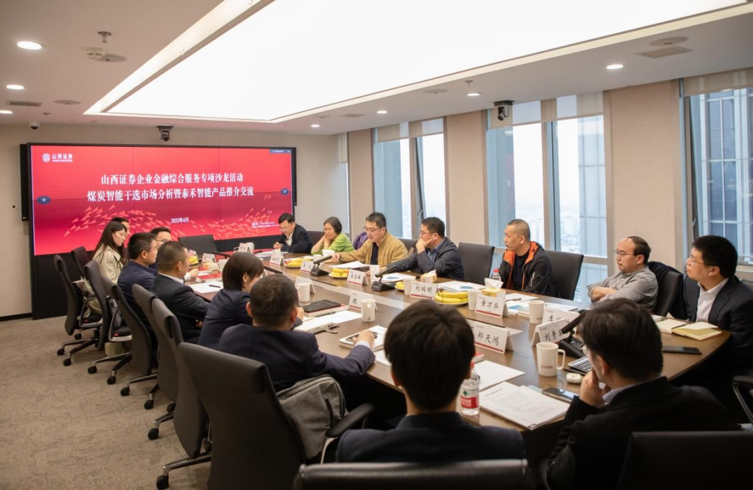 2023年4月21日,泰禾智能與山西證券簽訂戰(zhàn)略合作協(xié)議之后,圍繞泰禾智能在企業(yè)金融服務(wù)中心開(kāi)展以“煤炭智能干選市場(chǎng)分析暨泰禾智能產(chǎn)品推介交流”專(zhuān)項(xiàng)沙龍活動(dòng)。泰禾智能董事長(zhǎng)許大紅、董秘徐加楨、董事長(zhǎng)秘書(shū)程興韜、山西大區(qū)總監(jiān)周賀,以及相關(guān)企業(yè)代表、行業(yè)專(zhuān)家代表,山西證券執(zhí)委會(huì)委員謝衛(wèi)、研究所研究員劉貴軍、企業(yè)金融部魏佳、李世雄等參與本次活動(dòng)。