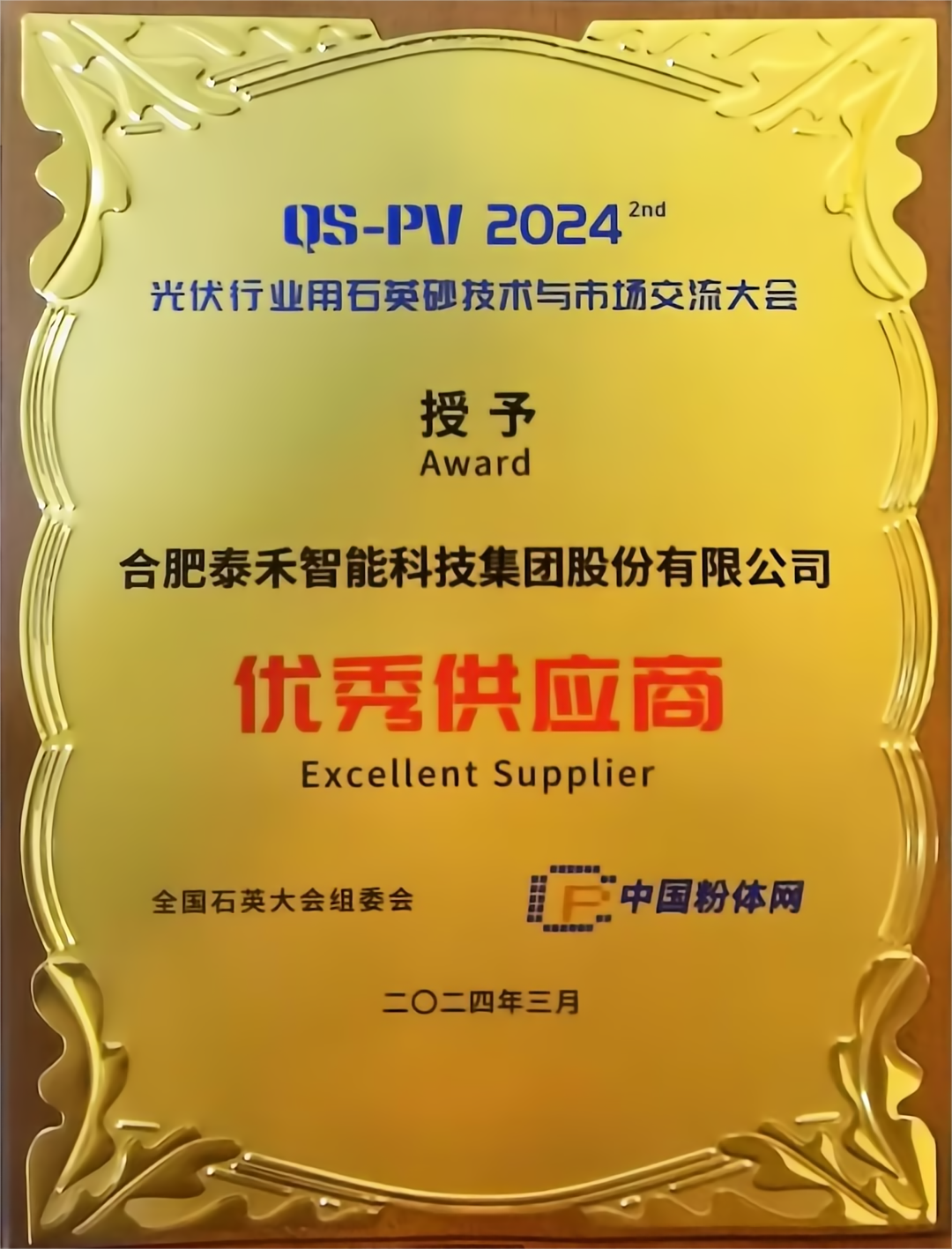 泰禾智能榮獲“優(yōu)秀供應(yīng)商”大獎 助推中國光伏行業(yè)高質(zhì)量發(fā)展