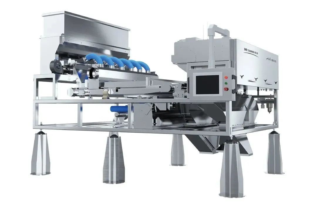 3.5億像素超清影像+類太陽光譜技術(shù),實現(xiàn)360度多維成像;標(biāo)配多譜共焦功能,實現(xiàn)對堅果中玻璃、干燥劑、透明塑料粒子有效剔除;可適配InGaAs紅外分選技術(shù),精準(zhǔn)識別玻璃、塑料、石子、金屬、煙頭、袋繩等惡雜。