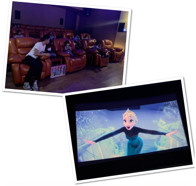 為了貼合孩子們的興趣愛好,熱鬧的游戲環(huán)節(jié)結(jié)束以后,公司放映廳播放了經(jīng)典的兒童電影《冰雪奇緣》。讓兒童從活潑好動到瞬間安靜,這就是動畫片的魅力所在了!